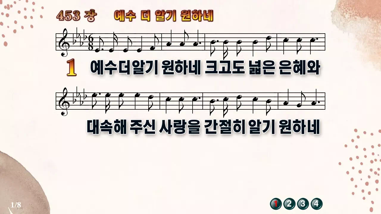 새찬송가 '453장 예수 더 알기 원하네'16:9 와이드버전으로 편집된 새찬송가 PPT악보입니다.