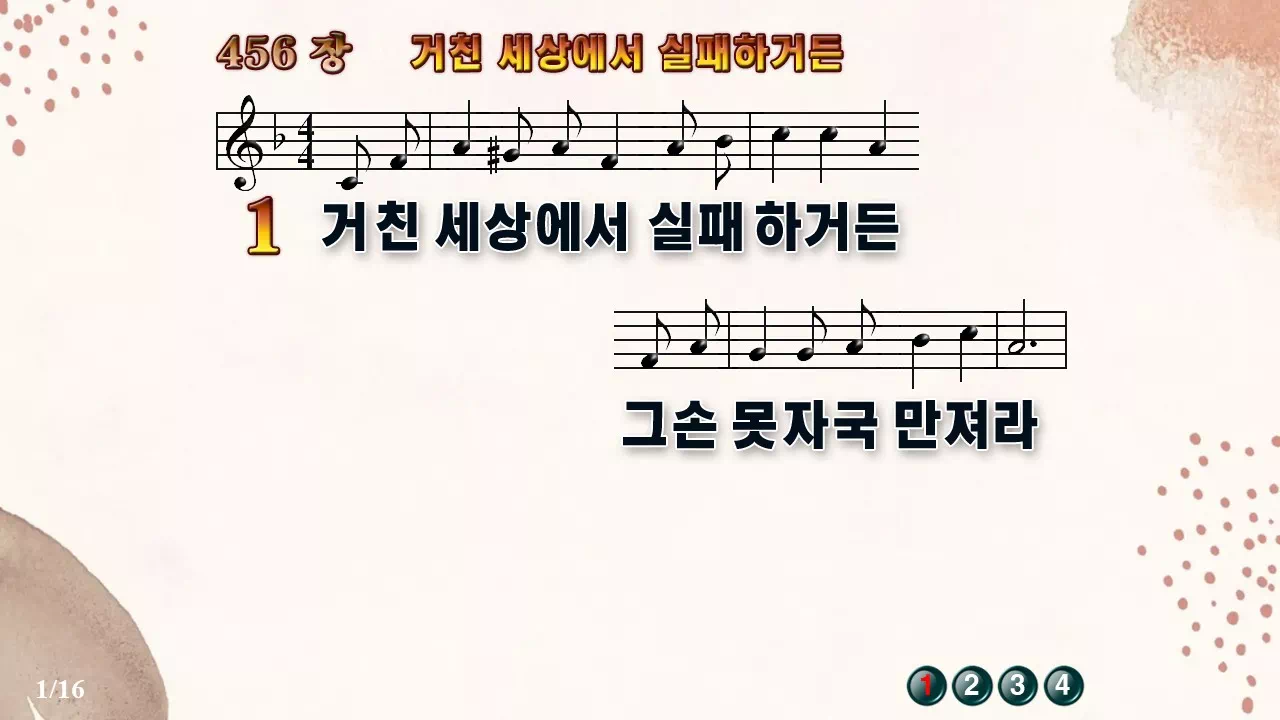 새찬송가 '456장 거친 세상에서 실패하거든'의 16:9 와이드버전으로 편집된 새찬송가 PPT악보입니다.