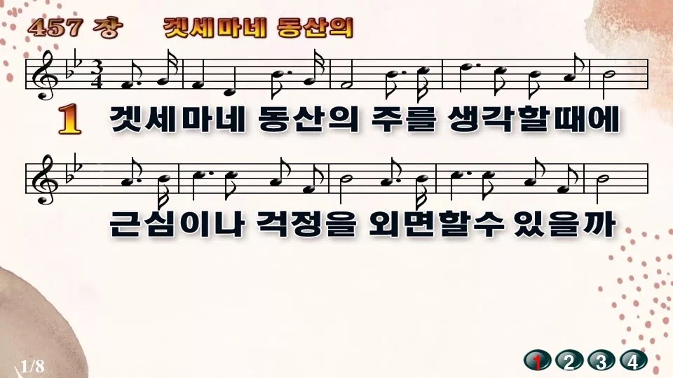 새찬송가 PPT: 457장 겟세마네 동산의(16:9/가사/PPT악보/다운로드/배경O)