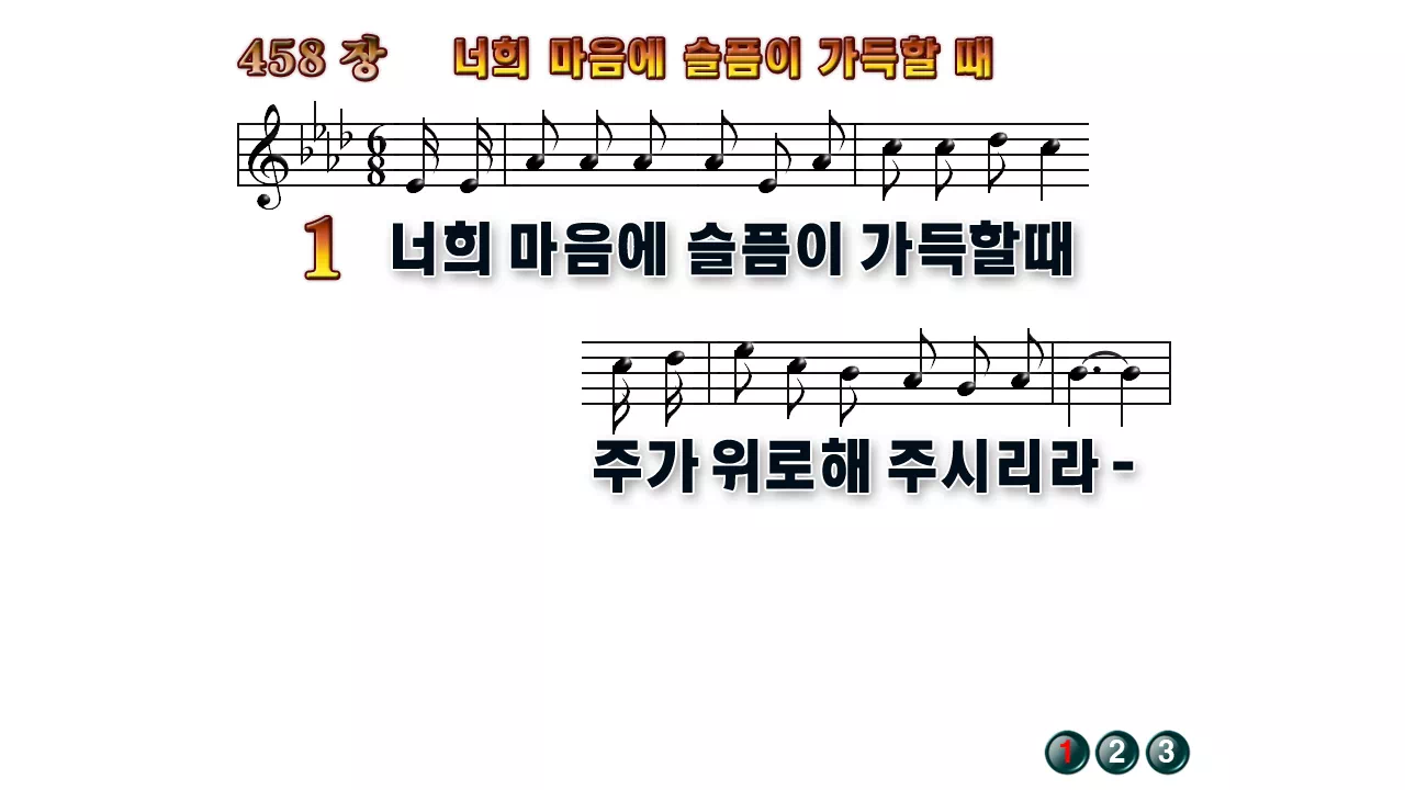 새찬송가 PPT: 458장 너희 마음에 슬픔이 가득할때(16:9/가사/PPT악보/다운로드/배경X)