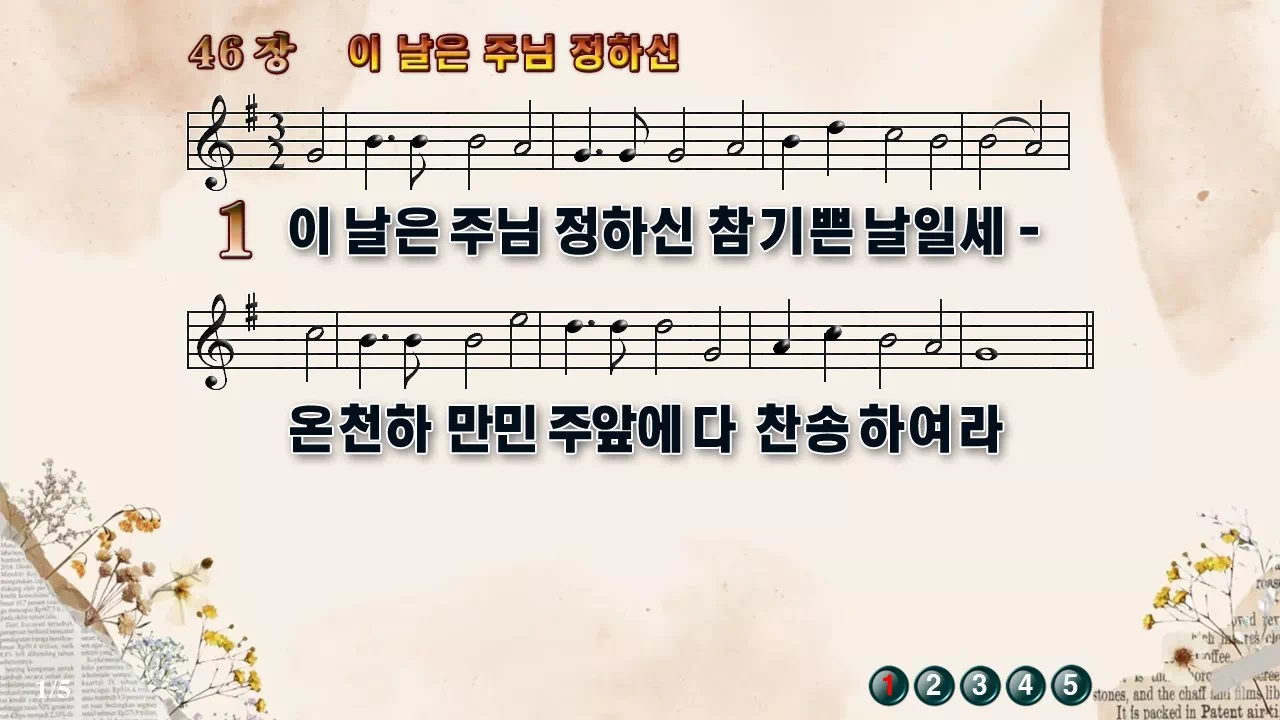 새찬송가 '46장 이 날은 주님 정하신'의 16:9 와이드버전으로 편집된 새찬송가 PPT악보입니다.