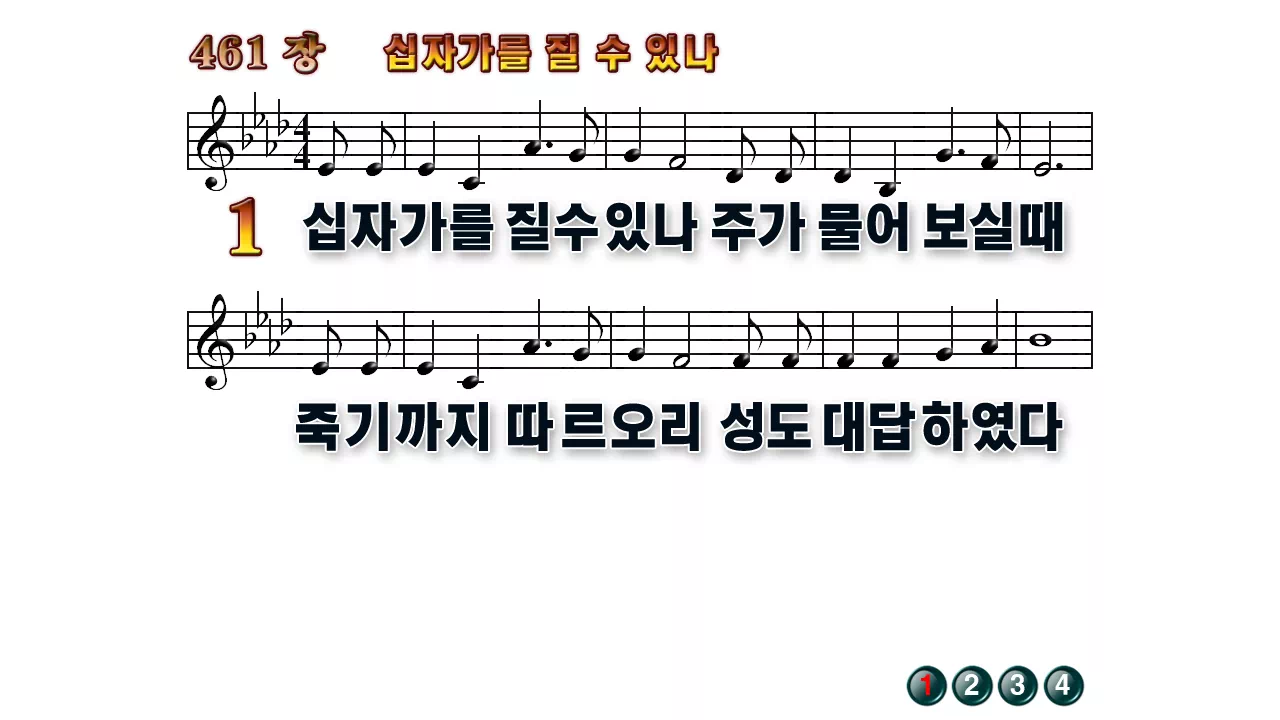 새찬송가 '461장 십자가를 질 수 있나'의 16:9 와이드버전으로 편집된 배경 없는 새찬송가 PPT악보입니다.
