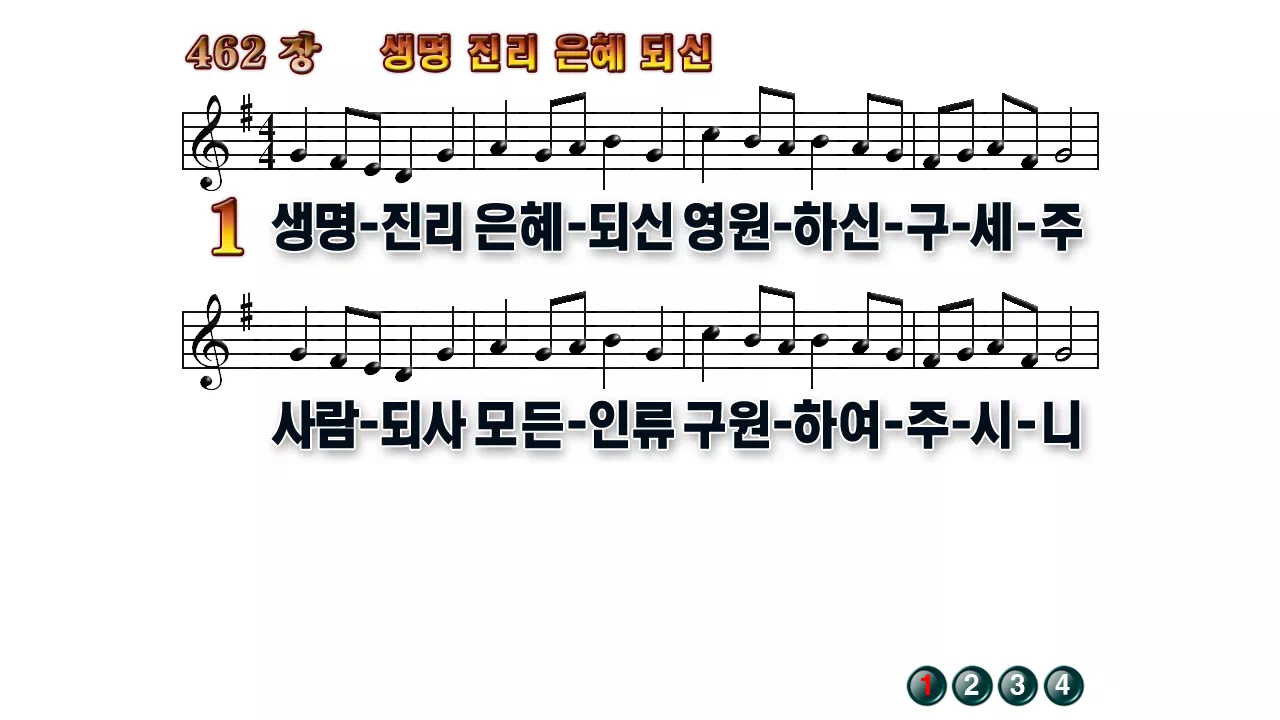 새찬송가 '462장 생명 진리 은혜되신'16:9 와이드버전으로 편집된 배경 없는 새찬송가 PPT악보입니다.