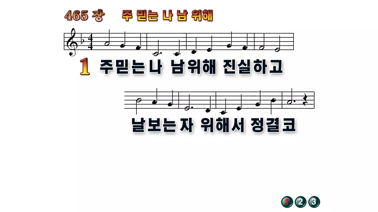 새찬송가 '465장 주 믿는 나 남 위해'16:9 와이드버전으로 편집된 배경 없는 새찬송가 PPT악보입니다.