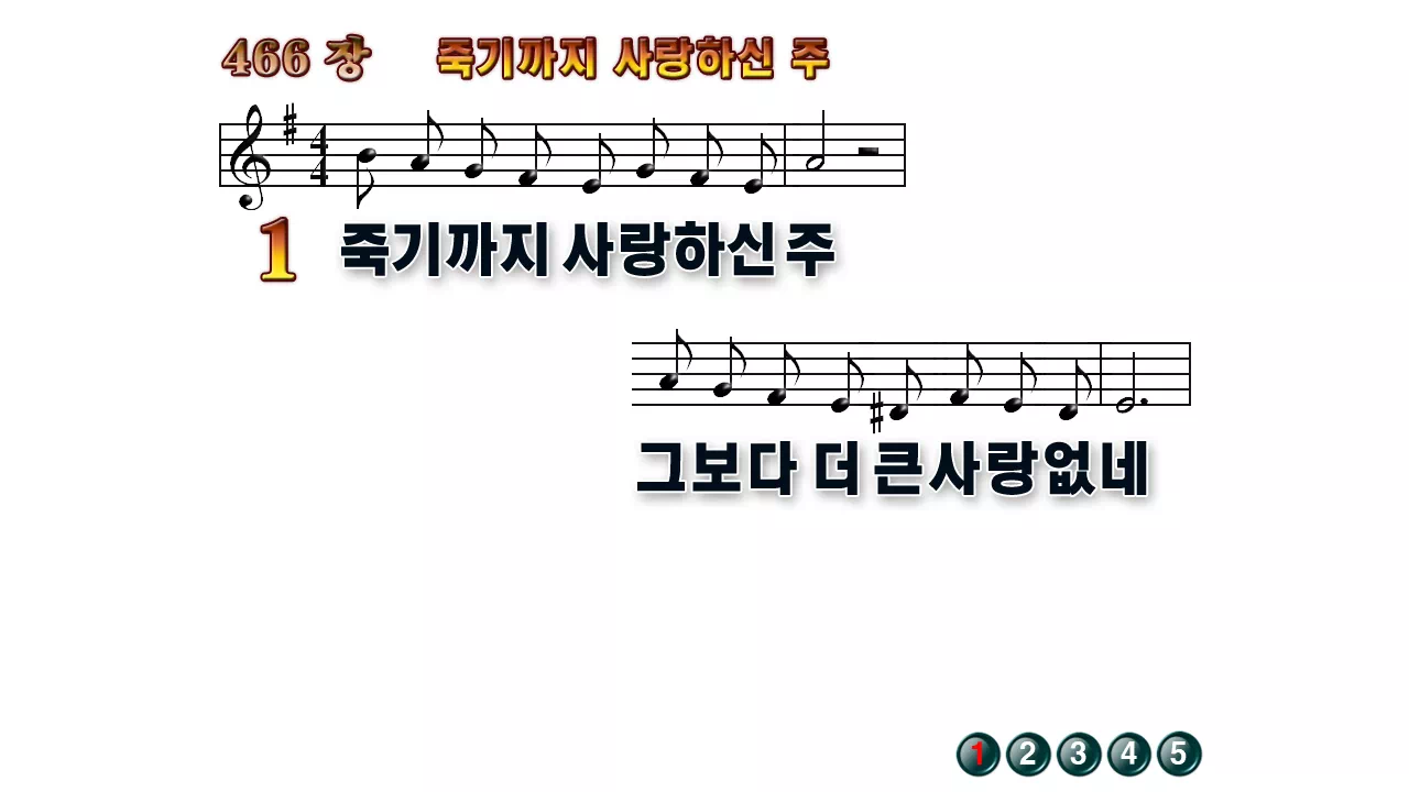 새찬송가 '466장 죽기까지 사랑하신 주'16:9 와이드버전으로 편집된 배경 없는 새찬송가 PPT악보입니다.