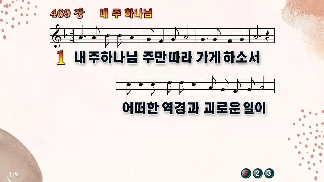 새찬송가 '469장 내 주 하나님'의 16:9 와이드버전으로 편집된 새찬송가 PPT악보입니다.