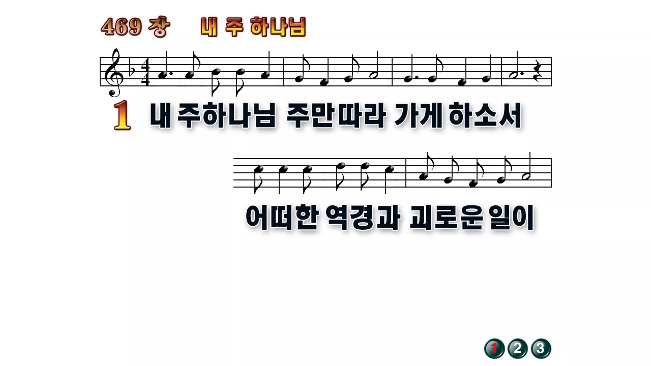 새찬송가 '469장 내 주 하나님'의 16:9 와이드버전으로 편집된 배경 없는 새찬송가 PPT악보입니다.