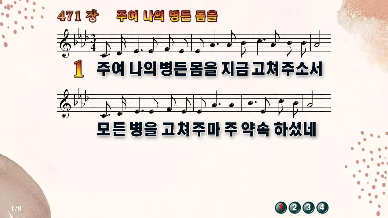 새찬송가 '471장 주여 나의 병든 몸을'의 16:9 와이드버전으로 편집된 새찬송가 PPT악보입니다.