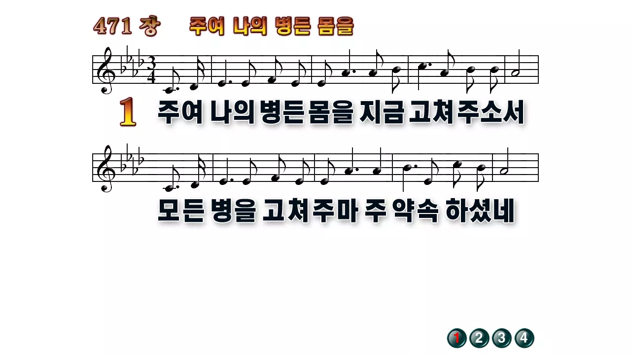새찬송가 '471장 주여 나의 병든 몸을'16:9 와이드버전으로 편집된 배경 없는 새찬송가 PPT악보입니다.