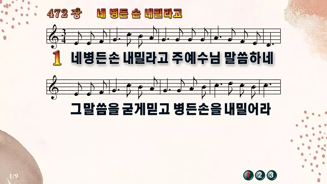 새찬송가 '472장 네 병든 손 내밀라고'16:9 와이드버전으로 편집된 새찬송가 PPT악보입니다.
