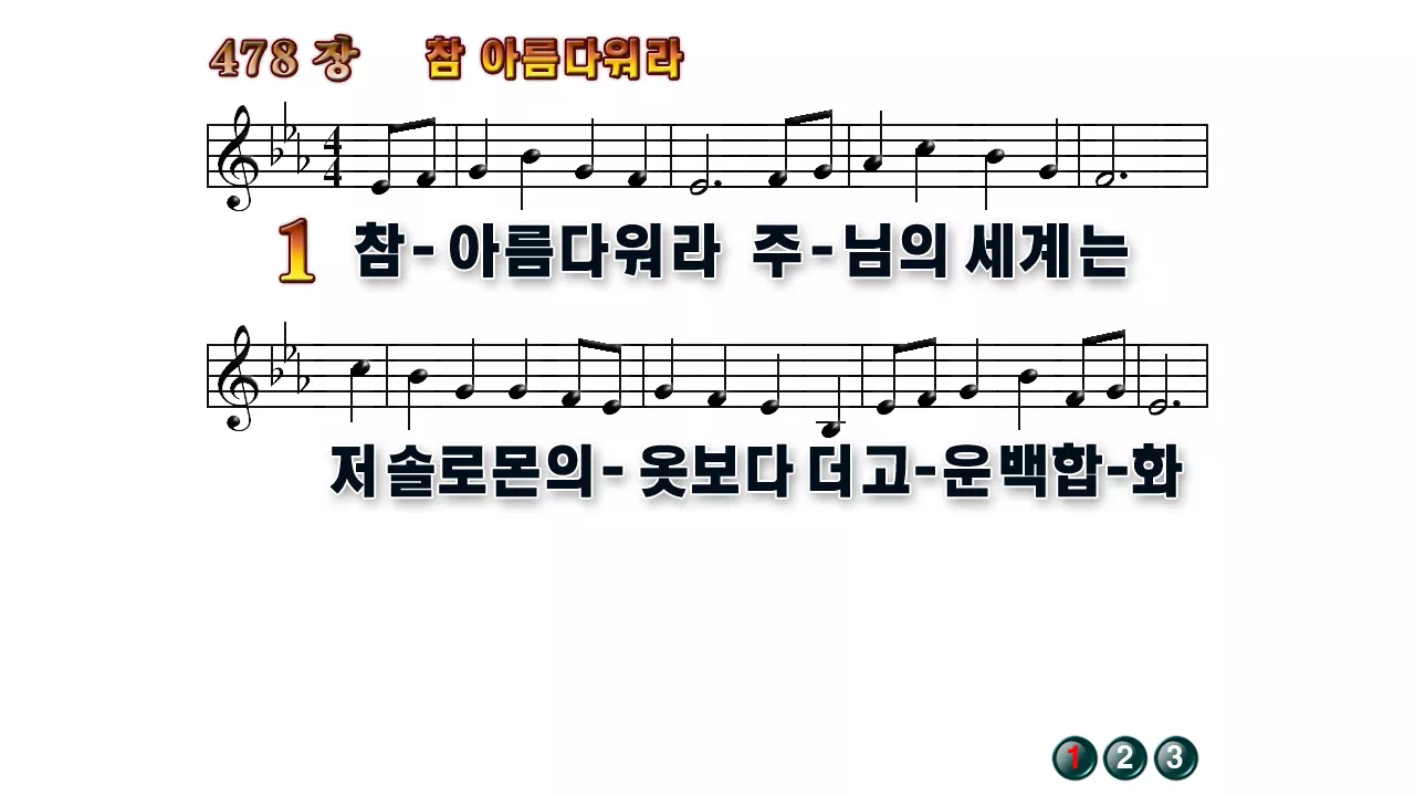 새찬송가 PPT: 478장 참 아름다워라(16:9/가사/PPT악보/다운로드/배경X)