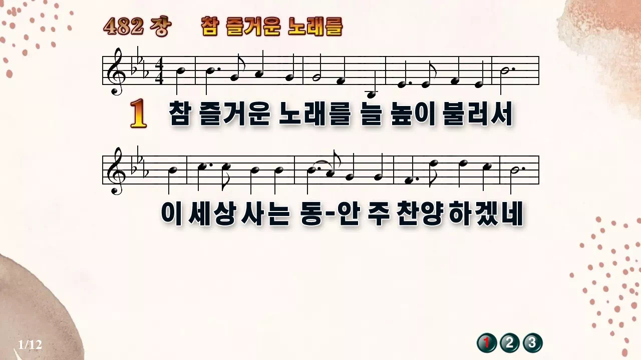 새찬송가 PPT: 482장 참 즐거운 노래를(16:9/가사/PPT악보/다운로드/배경O)