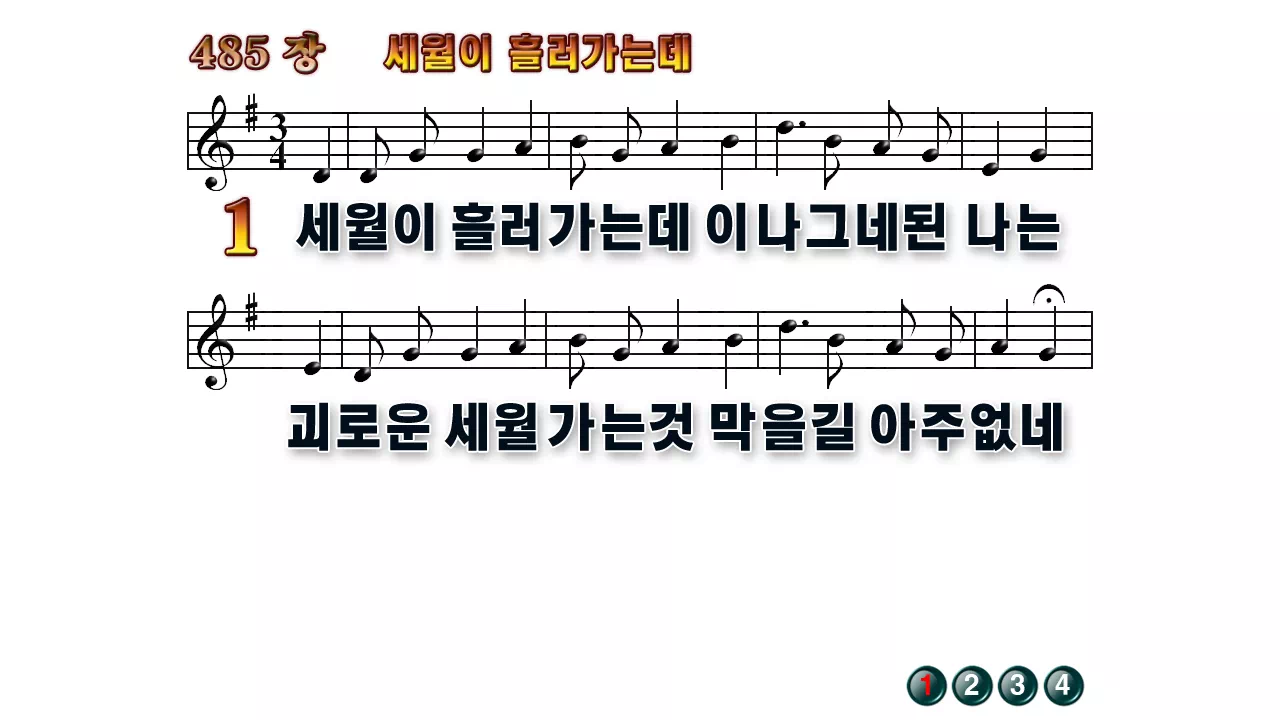 새찬송가 '485장 세월이 흘러가는데'의 16:9 와이드버전으로 편집된 배경 없는 새찬송가 PPT악보입니다.