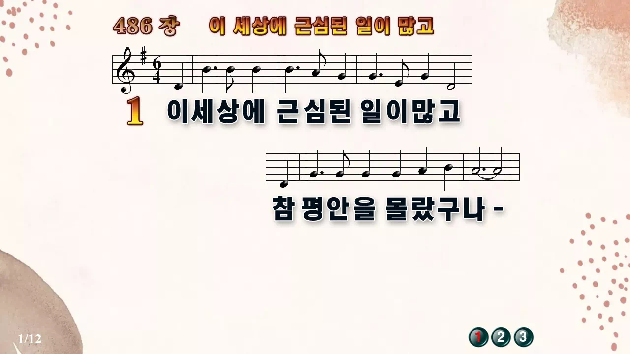 새찬송가 '486장 이 세상에 근심된 일이 많고'의 16:9 와이드버전으로 편집된 새찬송가 PPT악보입니다.