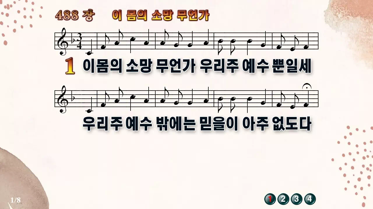 새찬송가 '488장 이 몸의 소망 무언가'의 16:9 와이드버전으로 편집된 새찬송가 PPT악보입니다.