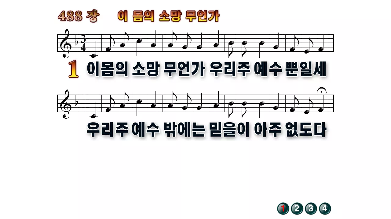 새찬송가 '488장 이 몸의 소망 무언가'의 16:9 와이드버전으로 편집된 배경 없는 새찬송가 PPT악보입니다.