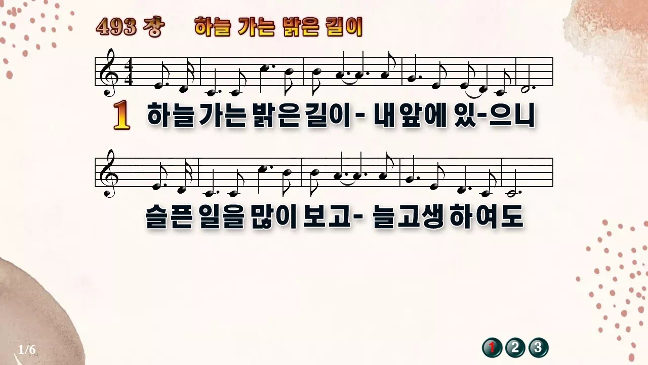 새찬송가 PPT: 493장 하늘가는 밝은 길이(16:9/가사/PPT악보/다운로드/배경O)