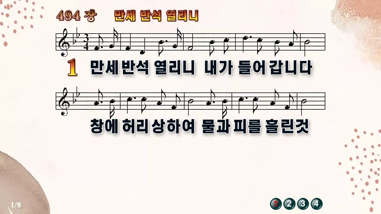 새찬송가 '494장 만세반석 열리니'의 16:9 와이드버전으로 편집된 새찬송가 PPT악보입니다.