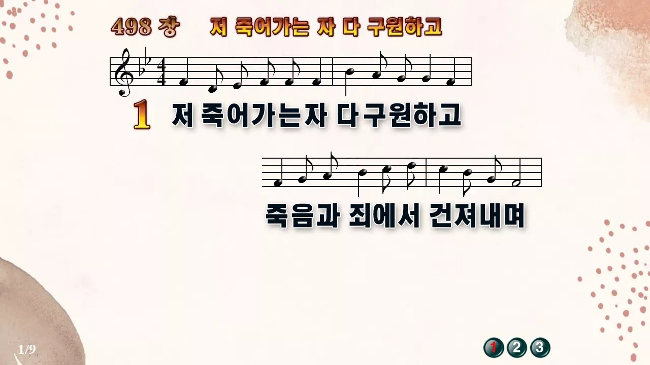 새찬송가 '498장 저 죽어가는 자 다 구원하고'의 16:9 와이드버전으로 편집된 새찬송가 PPT악보입니다.