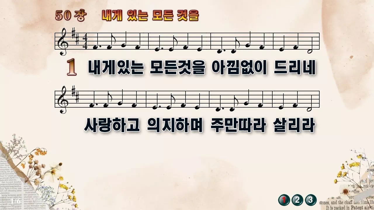 새찬송가 '50장 내게 있는 모든 것을'의 16:9 와이드버전으로 편집된 새찬송가 PPT악보입니다.