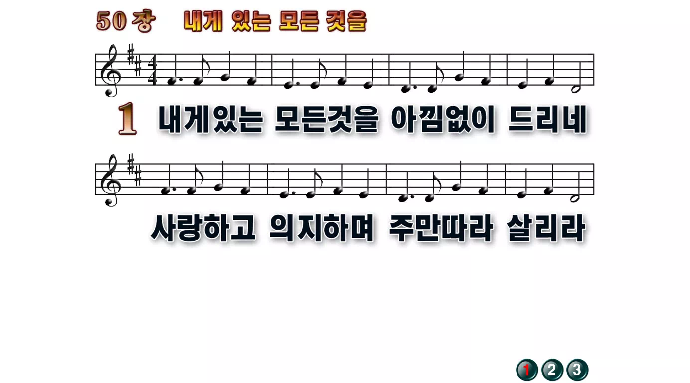 새찬송가 '50장 내게 있는 모든 것을'의 16:9 와이드버전으로 편집된 배경 없는 새찬송가 PPT악보입니다.