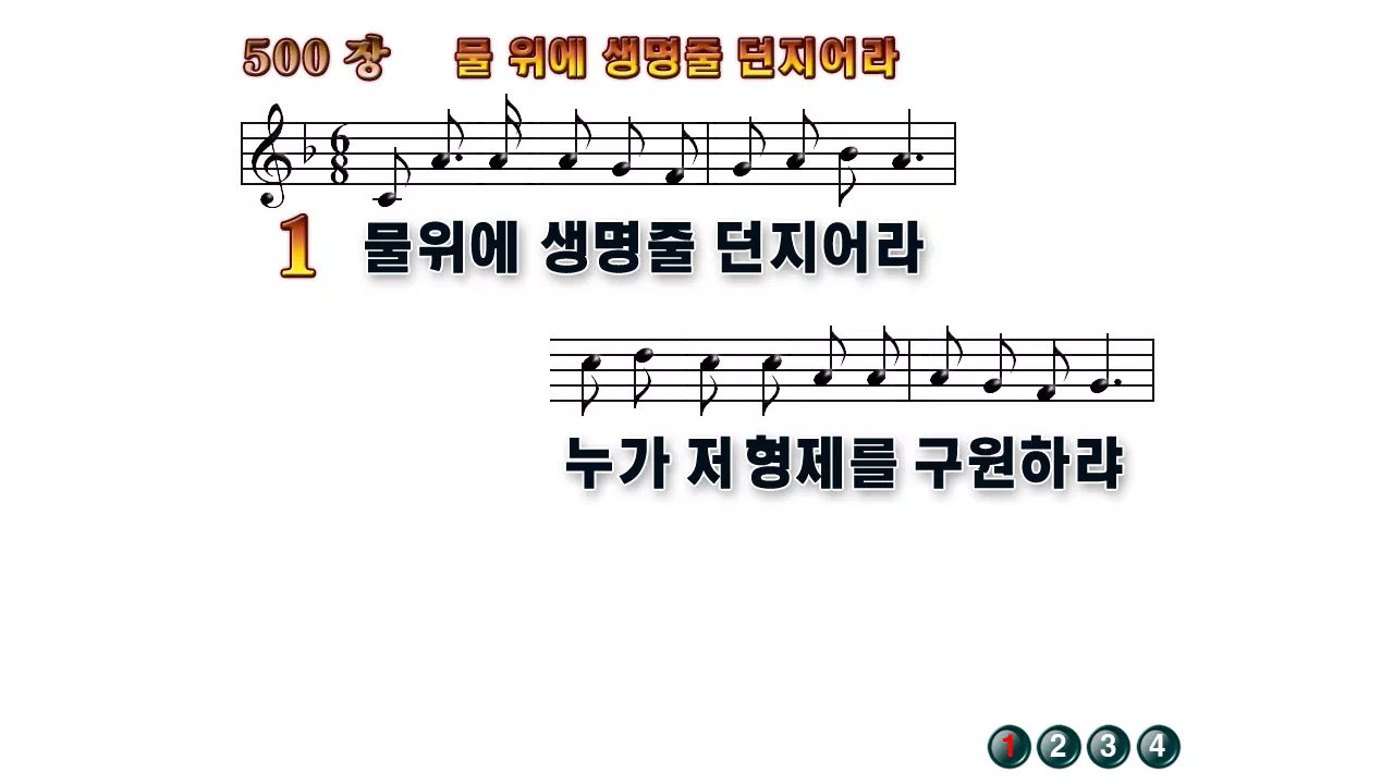 새찬송가 PPT: 500장 물위에 생명줄 던지어라(16:9/가사/PPT악보/다운로드/배경X)