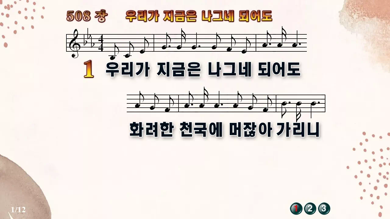 새찬송가 PPT: 508장 우리가 지금은 나그네 되어도(16:9/가사/PPT악보/다운로드/배경O)