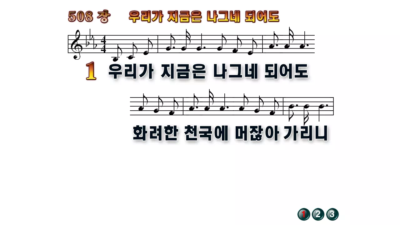 새찬송가 PPT: 508장 우리가 지금은 나그네 되어도(16:9/가사/PPT악보/다운로드/배경X)
