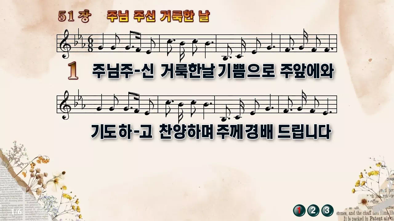 새찬송가 '51장 주님 주신 거룩한 날'의 16:9 와이드버전으로 편집된 새찬송가 PPT악보입니다.