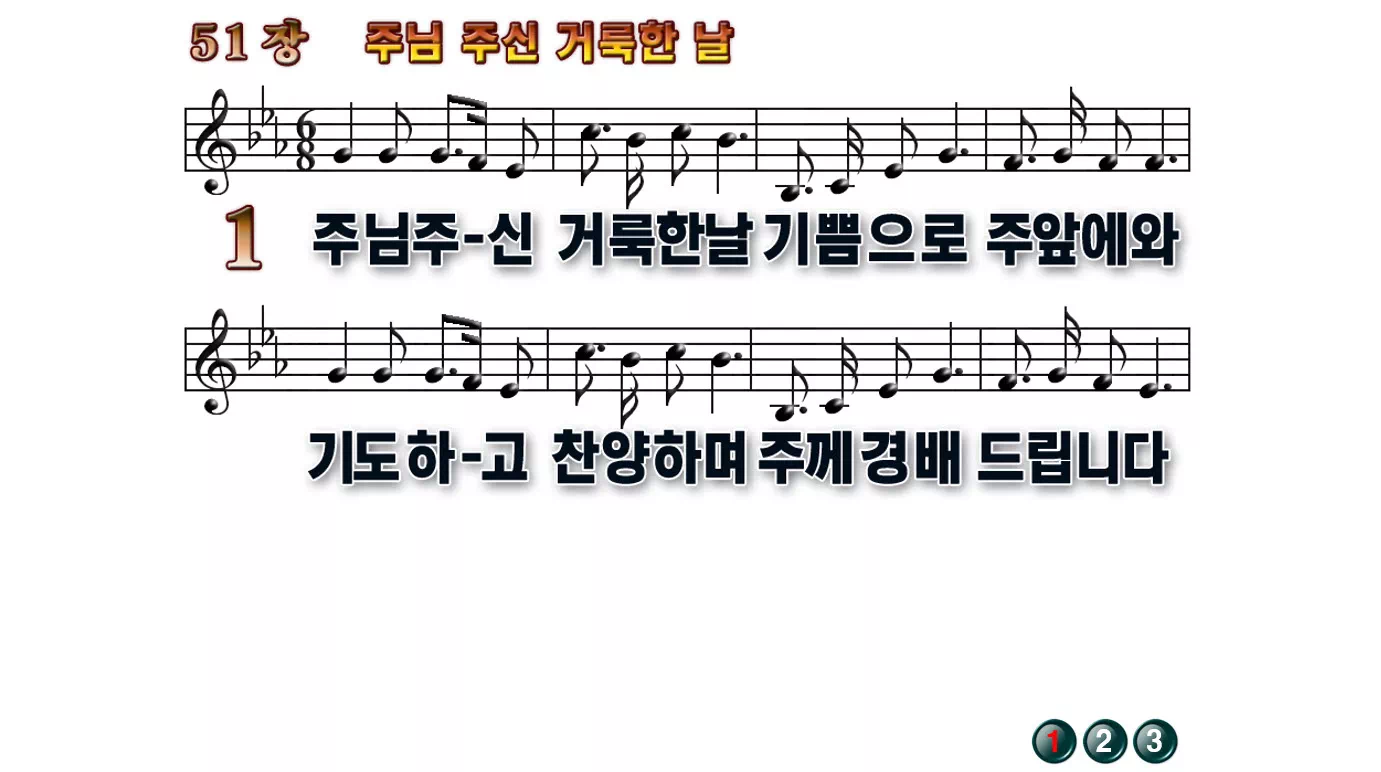 새찬송가 PPT: 51장 주님 주신 거룩한 날(16:9/가사/PPT악보/다운로드/배경X)