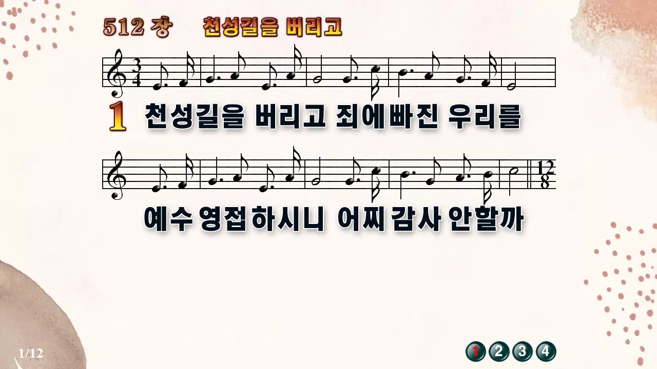 새찬송가 '512장 천성길을 버리고'16:9 와이드버전으로 편집된 새찬송가 PPT악보입니다.