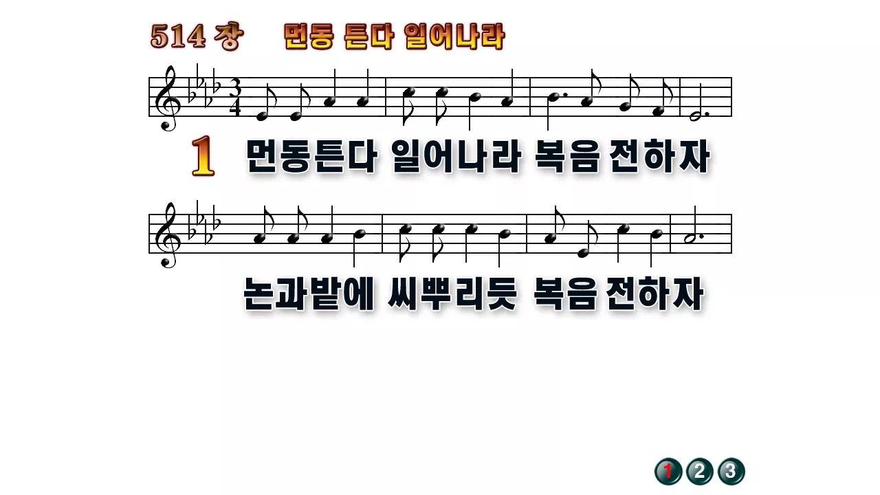 새찬송가 '514장 먼동 튼다 일어나라'16:9 와이드버전으로 편집된 배경 없는 새찬송가 PPT악보입니다.