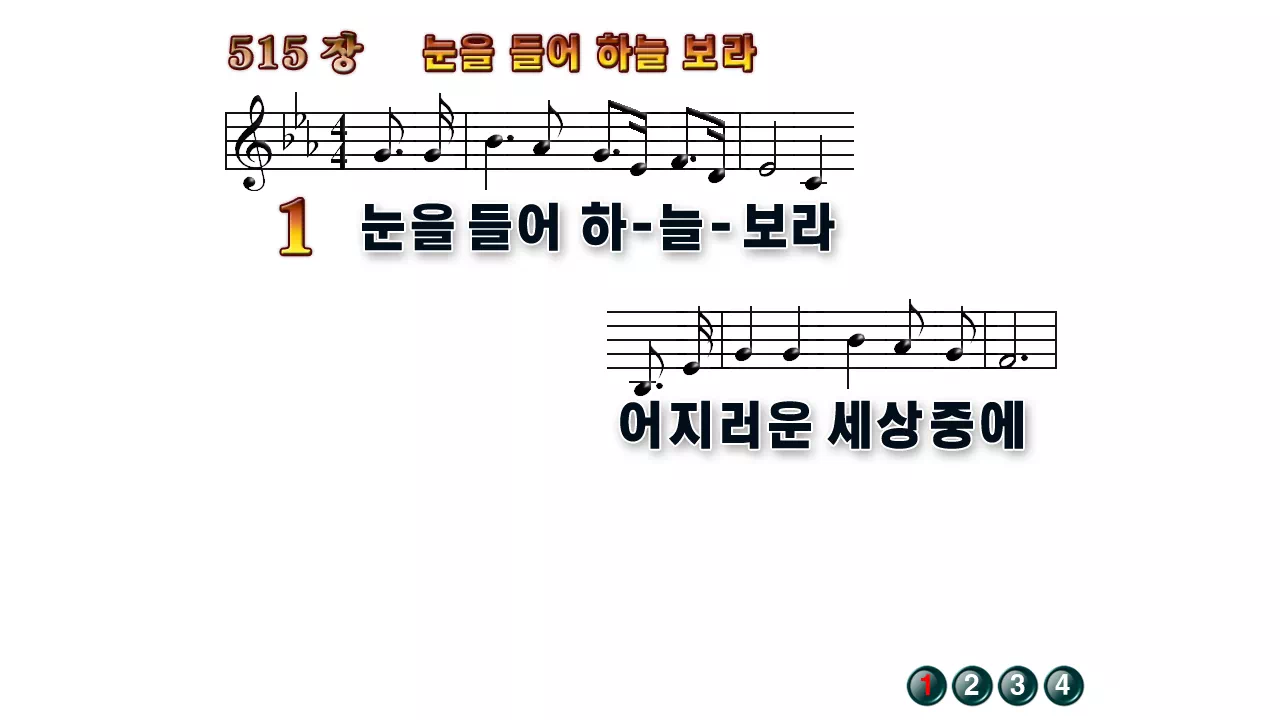 새찬송가 '515장 눈을 들어 하늘보라'16:9 와이드버전으로 편집된 배경 없는 새찬송가 PPT악보입니다.