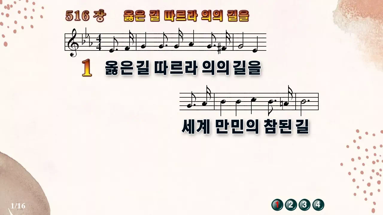 새찬송가 PPT: 516장 옳은 길 따르라 의의길을(16:9/가사/PPT악보/다운로드/배경O)