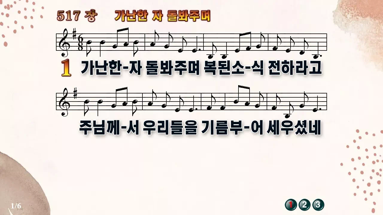 새찬송가 PPT: 517장 가난한 자 돌봐주며(16:9/가사/PPT악보/다운로드/배경O)