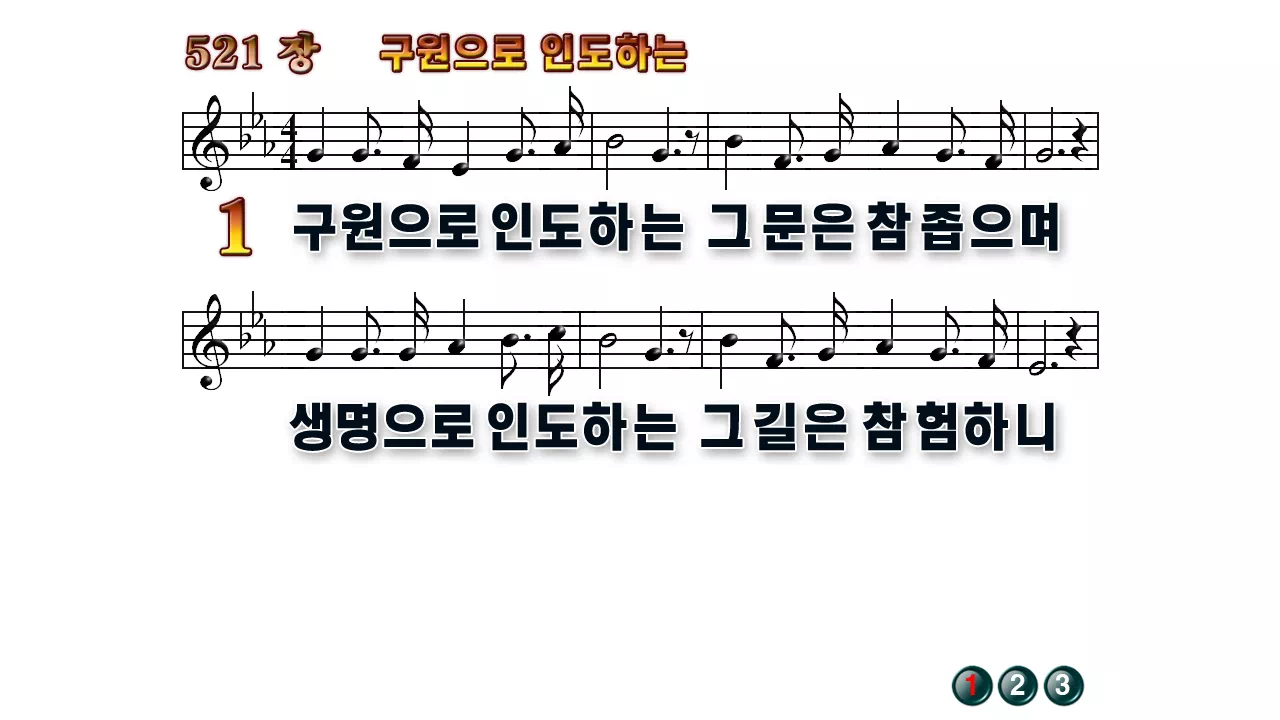 새찬송가 PPT: 521장 구원하는 인도하는(16:9/가사/PPT악보/다운로드/배경X)