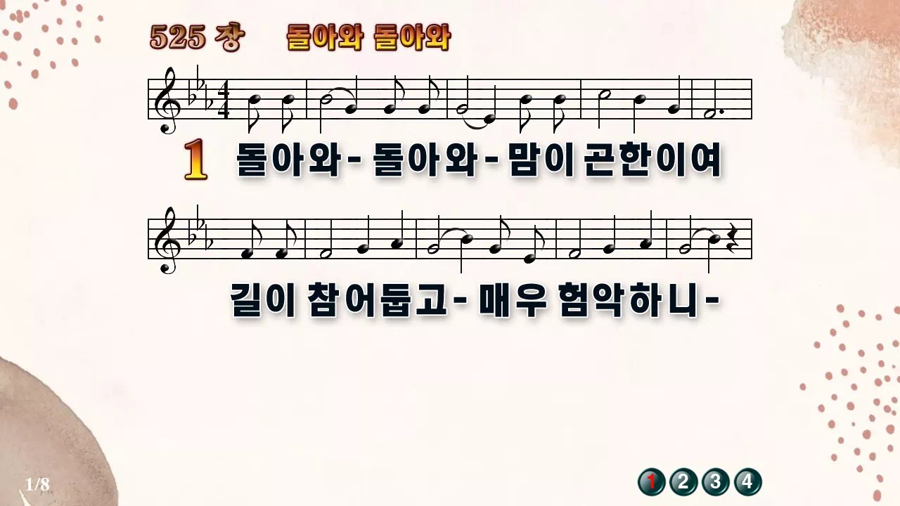 새찬송가 '525장 돌아와 돌아와'의 16:9 와이드버전으로 편집된 새찬송가 PPT악보입니다.