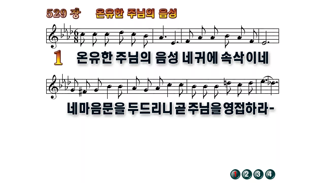 새찬송가 '529장 온유한 주님의 음성'의 16:9 와이드버전으로 편집된 배경 없는 새찬송가 PPT악보입니다.