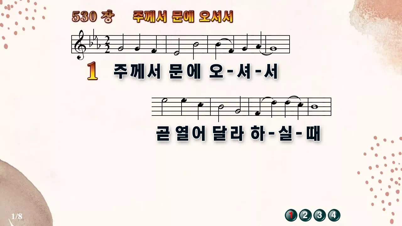 새찬송가 PPT: 530장 주께서 문에 오셔서(16:9/가사/PPT악보/다운로드/배경O)