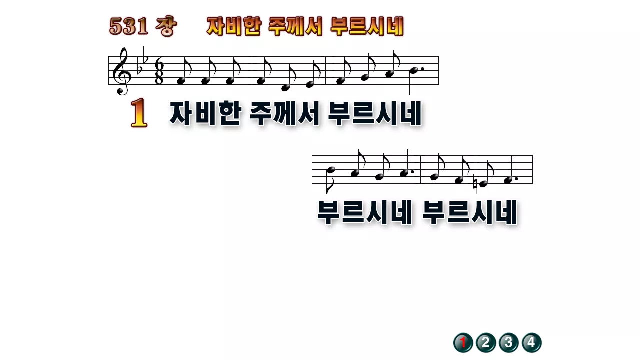 새찬송가 PPT: 531장 자비한 주께서 부르시네(16:9/가사/PPT악보/다운로드/배경X)