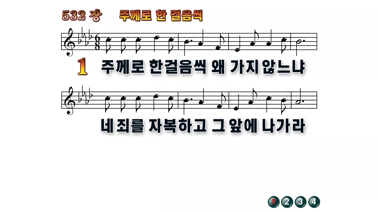 새찬송가 PPT: 532장 주께로 한걸음씩(16:9/가사/PPT악보/다운로드/배경X)