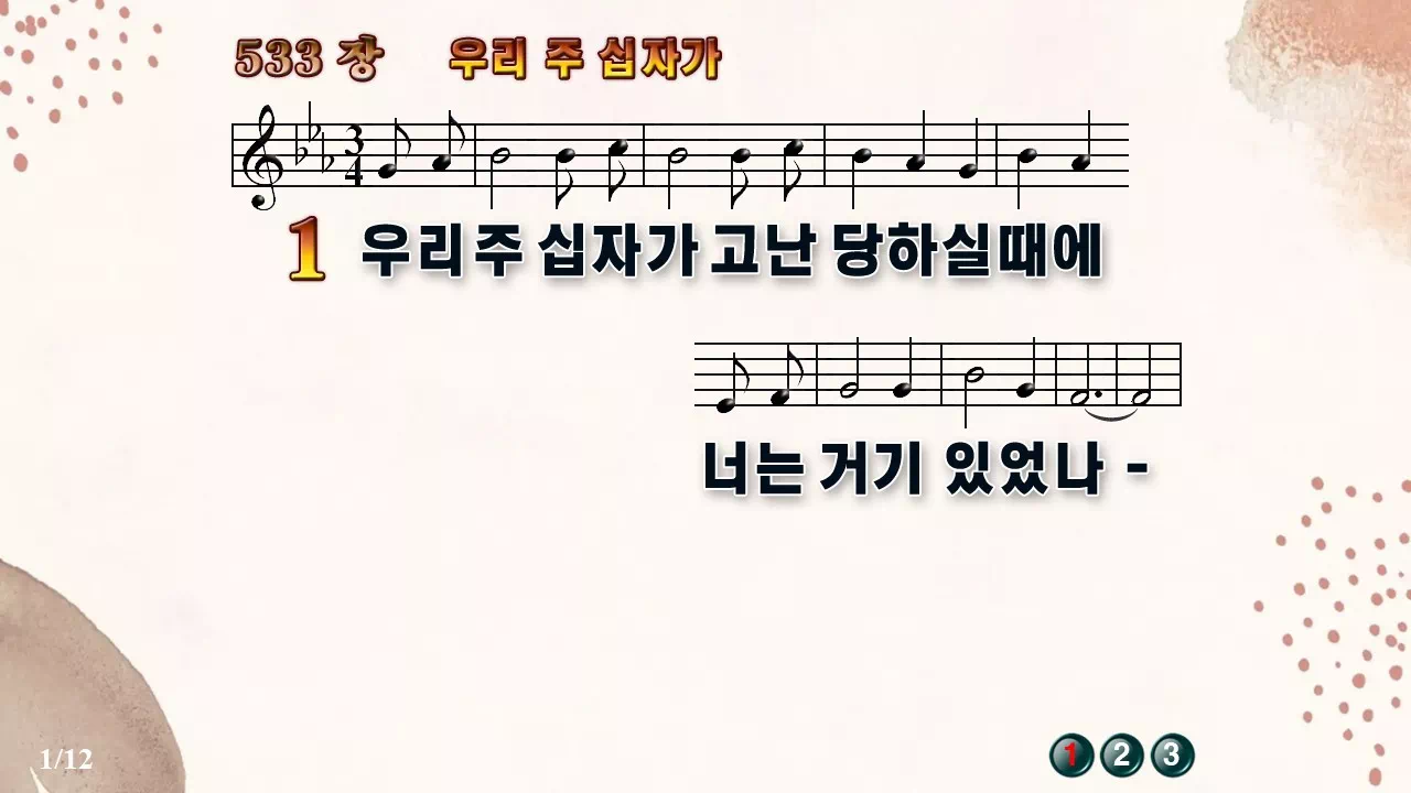 새찬송가 '533장 우리 주 십자가'의 16:9 와이드버전으로 편집된 새찬송가 PPT악보입니다.