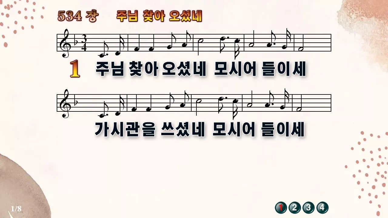 새찬송가 '534장 주님 찾아 오셨네'의 16:9 와이드버전으로 편집된 새찬송가 PPT악보입니다.