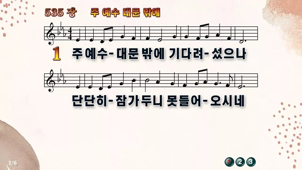 새찬송가 '535장 주 예수 대문밖에'의 16:9 와이드버전으로 편집된 새찬송가 PPT악보입니다.