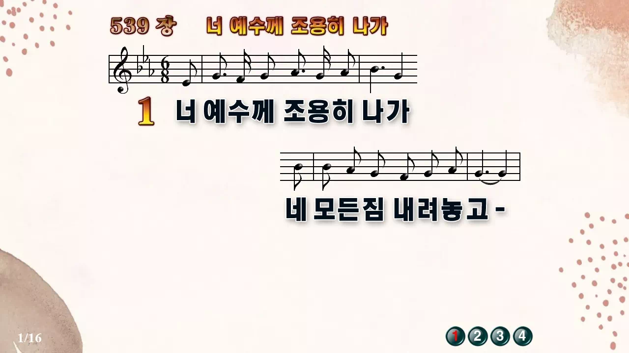 새찬송가 PPT: 539장 너 예수께 조용히 나가(16:9/가사/PPT악보/다운로드/배경O)