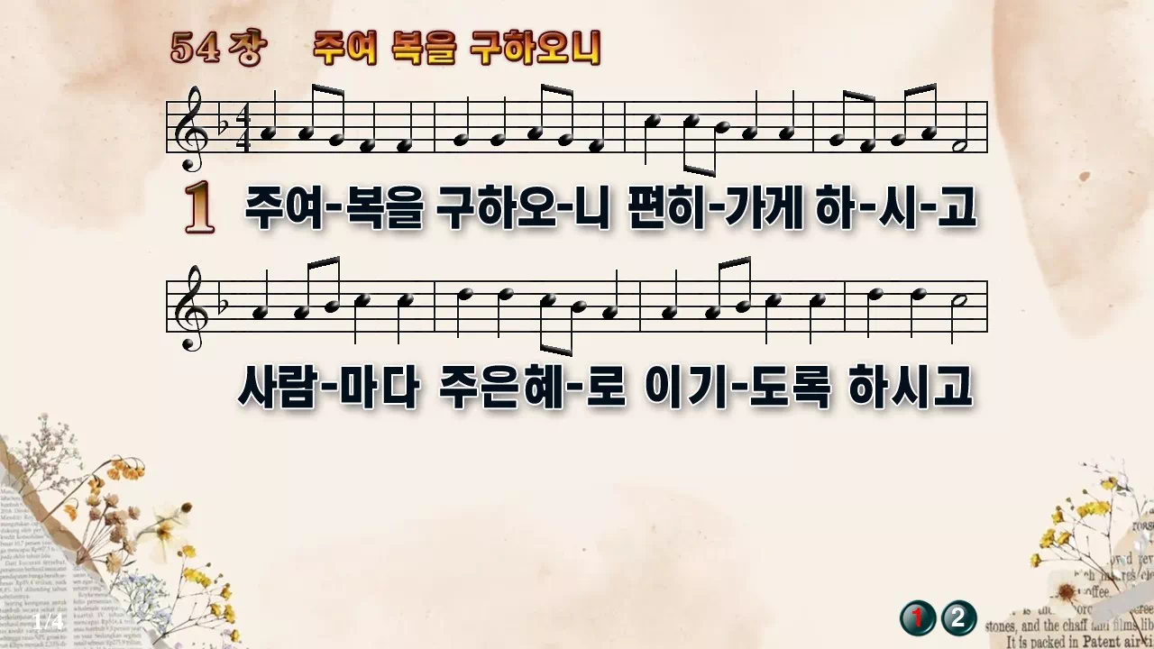 새찬송가 '54장 주여 복을 구하오니'의 16:9 와이드버전으로 편집된 새찬송가 PPT악보입니다.