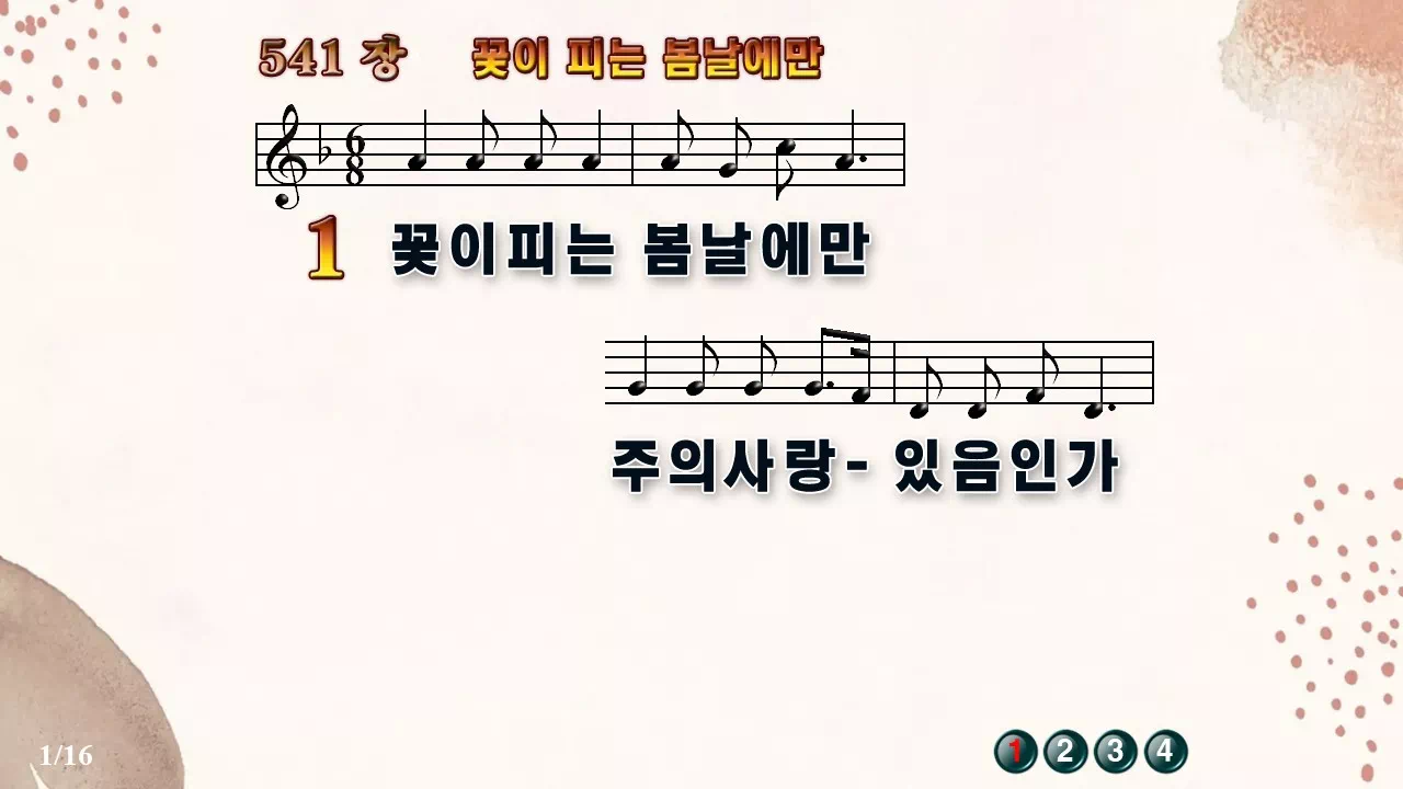 새찬송가 '541장 꽃이 피는 봄날에만'의 16:9 와이드버전으로 편집된 새찬송가 PPT악보입니다.