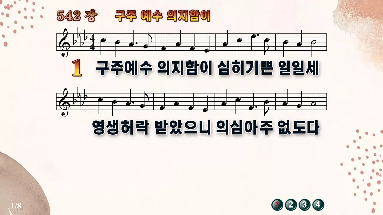 새찬송가 '542장 구주예수 의지함이'의 16:9 와이드버전으로 편집된 새찬송가 PPT악보입니다.