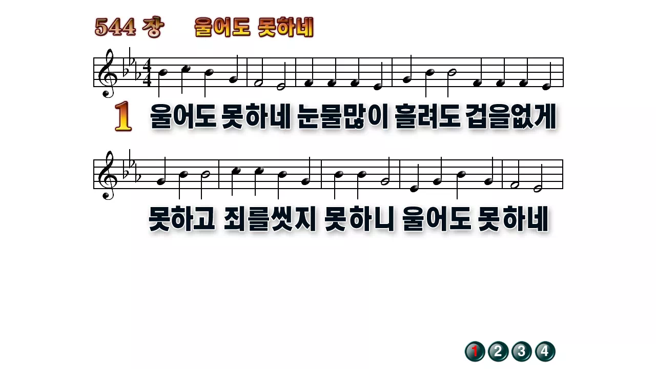 새찬송가 '544장 울어도 못하네'16:9 와이드버전으로 편집된 배경 없는 새찬송가 PPT악보입니다.