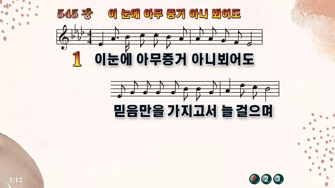 새찬송가 '545장 이 눈에 아무 증거 아니 뵈어도'16:9 와이드버전으로 편집된 새찬송가 PPT악보입니다.